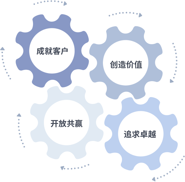 成就客户是一切决策的出发点,创造价值是衡量所有工作的标准,追求卓越是多彩联盟做事做人的态度,开放共赢是多彩联盟的格局也是最终的结果。价值观的齿轮环环相扣,推动着组织里的每个人不断向前。